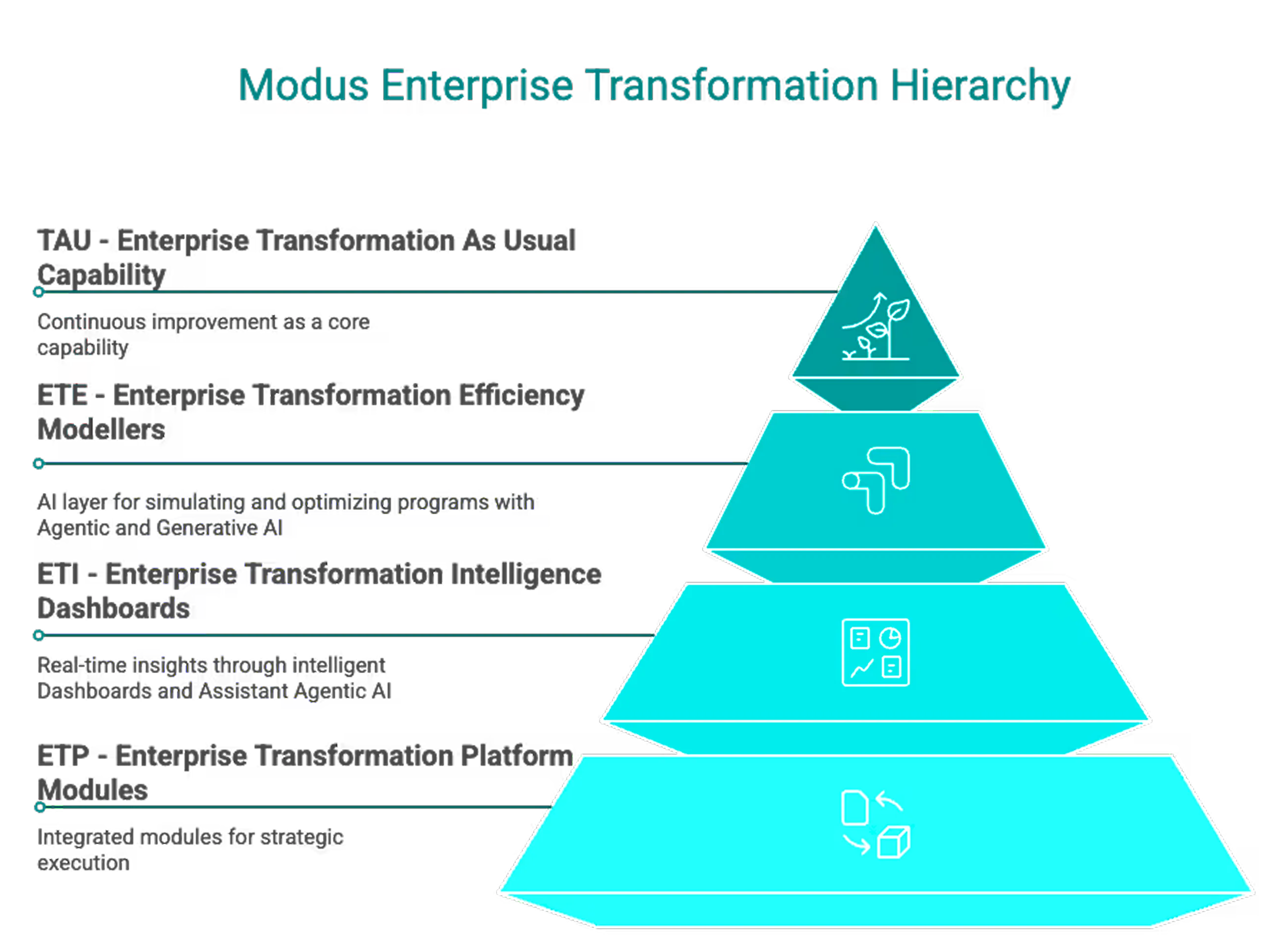 Empowering Transformation with Modus ETP's Core Components, integrated tools designed to enhance strategic alignment, operational efficiency, and sustainable change management across complex, multi-layered enterprises.